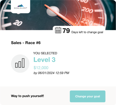 Transform ambition into action. GoalQuest not only empowers your sales professionals to set their own goals and push their limits, but also potentially pays for itself through extraordinary results.